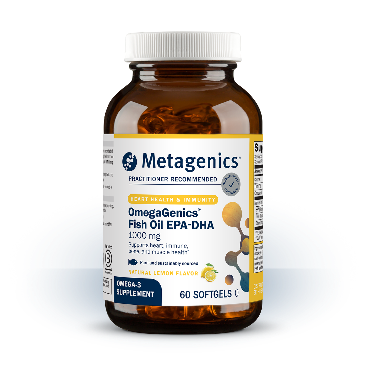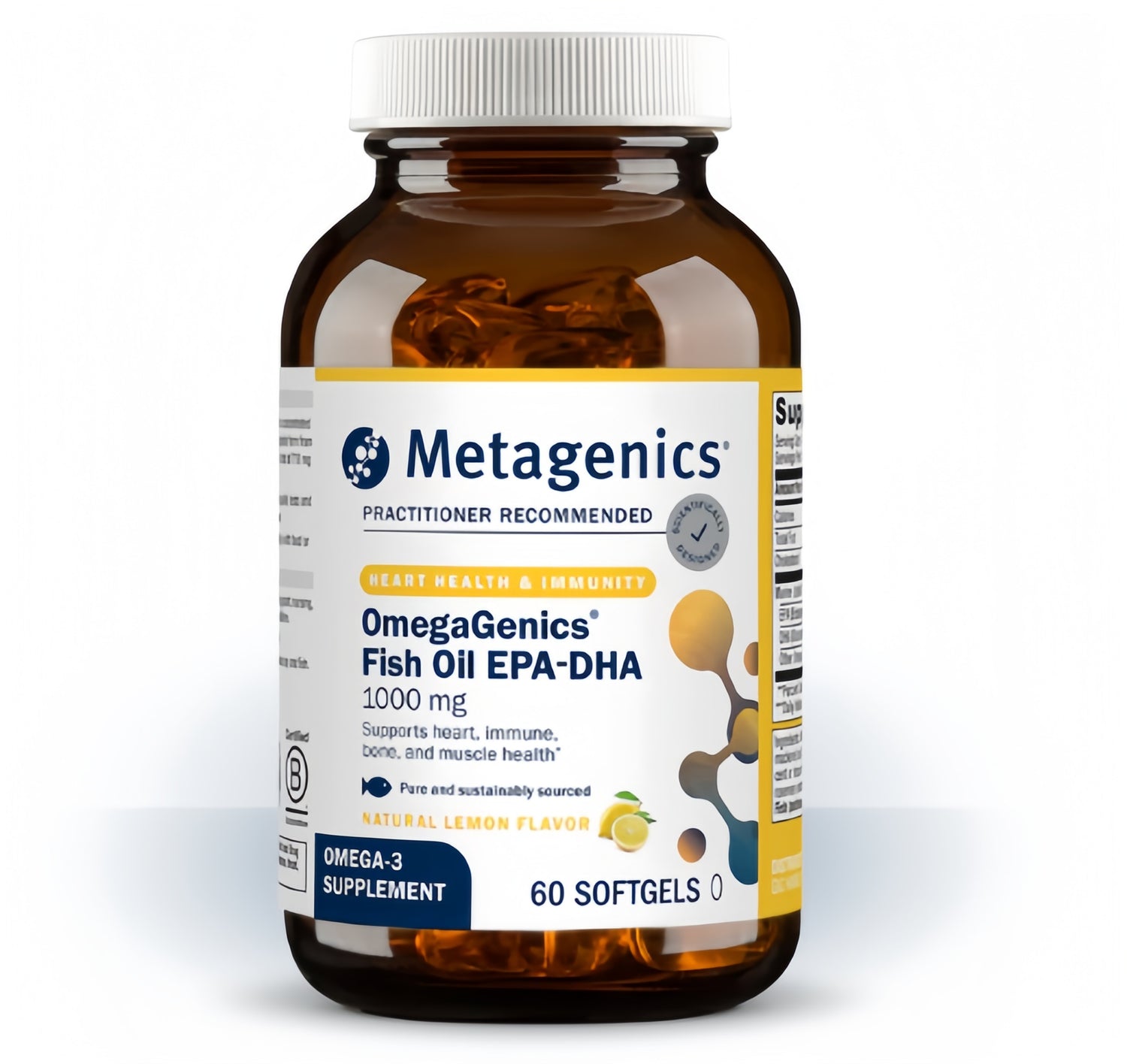 If you’re looking for a pure, high-potency omega-3 supplement, OmegaGenics EPA-DHA 1000 gives you reliable, daily support. Sourced from wild-caught, cold-water fish and purified for safety, each serving helps protect your heart, nourish your brain and eyes, and support your immune system, bones, and muscles.